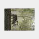 An illustration of a Moose / Elk Silhouette with antlers in the forest vector graphic. In greens and grunge browns. Hunting and hunters image design. Wild life scenery.