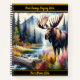 A solitary moose stands proudly beside a shimmering stream, surrounded by colourful autumn foliage and towering mountains, evoking a serene and picturesque wilderness experience.