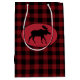 Linda Baysinger Peck’s painting of a black silhouette of a bull moose, with red and black checks, that have a subtle, textured appearance.Image © Linda Baysinger Peck All Rights Reserved