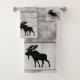 Moose Silhouette Grey Wood Pattern Bath Towel Set