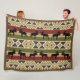 Moose Wildlife Animal Red Green Ochre Ikat Stripes Fleece Blanket