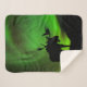 Moose with Green Aurora Borealis, Alaska Sherpa Blanket