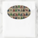 Moose Wolf Pine Tree Rustic Burlap Print Outdoors Oval Sticker