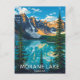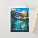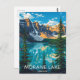 Capture the breathtaking majesty of Moraine Lake in Banff National Park, Canada, with this beautiful retro-style travel postcard. The design features the iconic turquoise waters of the lake reflecting the towering Valley of the Ten Peaks under a sunny sky, framed by majestic pine trees. This vintage-inspired artwork perfectly captures the spirit of the Canadian Rockies. Ideal for hikers, nature lovers, mountain enthusiasts, and anyone seeking a stunning souvenir or a piece of nostalgic national park art.