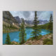Moraine Lake as seen from the rock pile. Rent a canoe for a memorable trip. The beautiful lake is framed by the Rocky Mountains. The turquoise colour of the water is from light reflcting on the "rock flower" carried in from the glacier water. You can visit Moraine Lake in Banff National Park, Alberta Canada.