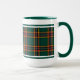 Coffee mug with the Moran clan tartan, a classic plaid pattern in forest green and black, with bright gold, red, and royal blue accents. Five styles available in two sizes.