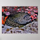 Leopard moray with a goby (bottom) and cleaner wrasse (near head), Maldives