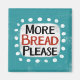 "More Bread Please" is a fun text design with a white accent shape surrounded by white whimsical textured dots.