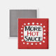"More Hot Sauce" is a cute text design in red with black and red text, along with a white accent shape and white textured whimsical dots surrounding it.