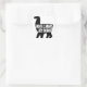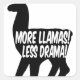 More llamas! Less drama! Black and white design. Comic style text inside a silhouette of a llama.