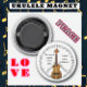 A sweet little ukulele is centred within a peace sign. The peace sign shape is formed with musical notes. The centre of the symbol and the ukulele divide the words: The world needs more Love / I need more UKULELE. Spread the Love, Peace and Music with this fun gift. There is a selection of sizes and shapes for this magnet.