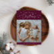 Modern Christmas theme birth announcement card featuring a typography text that says "more love this Christmas" with your newborn picture. This is a birth announcement card for the holiday seasons! Add your pictures, birth stats, and a message! The background is cranberry.