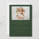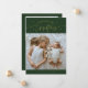 Modern Christmas theme birth announcement card featuring a typography text that says "more love this Christmas" with your newborn picture. This is a birth announcement card for the holiday seasons! Add your pictures, birth stats, and a message! The background is green.