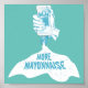 An illustration of a person's hand holding a bottle of mayonnaise. The text reads more mayonnaise. The mayo is squirting out. A design for anyone who loves mayo.