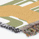 This throw blanket has a mid-century modern design of open rectangles in gold over open rectangles in green.