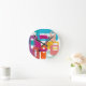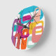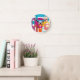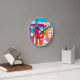 This clock has a mid-century modern design of retro rectangles and starbursts in bright retro colours.