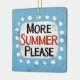 "More Summer Please" is a cute text design in blue with black and red text, along with a white accent shape and white textured whimsical dots surrounding it.