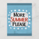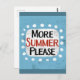"More Summer Please" is a cute text design in blue with black and red text, along with a white accent shape and white textured whimsical dots surrounding it.
