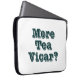 The ever popular humourous English catch phrase of film and comedy "More Tea Vicar?" Written in dark green decorative lettering.