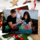Modern, photo Christmas birth announcement card. Announce birth of your baby with this holiday birth announcement card. Design features 2 photos , typography script ''the more the merrier'' in trendy lettering. Personalise further with more details on the back.