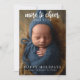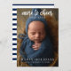 What better way to bring joy to your friends and family than a picture of your newborn on your family Christmas card. This card features a place for you to add a photo and on the top, it says "more to cheer" in a calligraphy font. There is a place for you to add a message at the bottom. On the back of the card, there is a navy and white stripe pattern.