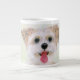 The image on this product displays Biscuit, a cute little Morkie. Biscuit is a designer dog -- a cross between the Maltese and the Yorkshire Terrier dog breeds. Very energetic, playful, sweet and smart, she's a great companion dog and lots of fun to have around. She apparently doesn't know her size as she tries to go after any dog, big or small, if she thinks they pose a threat to her owner.
