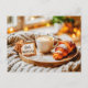 Morning coffee with steam rising holiday postcard
