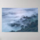 Morning fog rolling through trees poster