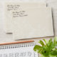 Matching Envelopes for the "Morning Glory Hydrange" Wedding Ensemble. This vintage inspired wedding collection has a complete ensemble of products and can be created in several colorways. If you would like it to match your wedding let us know via email and we'll be happy to assist you. This design consists a beautifully hand calligraphy font text, "United in Marriage," and a detailed original art swirl set in the background. There are a pair of butterflies flitting about a garden scene of morning glories, blue and white hydrangeas and a beautiful full blossomed white flower. All of these elements came from various antique original paintings. On the reverse side is the original art swirls and your text.