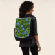 Morning glory in blue and green backpack