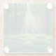 Sunlight filters through tall, dense trees, casting a radiant glow over a lush, green forest floor dotted with delicate white flowers. The serene environment evokes a sense of peace and tranquillity.
