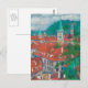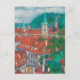 Postcard featuring colourful European cityscape, pastel painting in impressionist style. Spectacular view of old city, red tiled roofs and delicate mint green towers. Work was painted for Virtual plein-air art project on Facebook, original is available.
