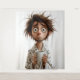 A whimsical and relatable illustration of a dishevelled man in a bathrobe clutching a cup of coffee with wide, tired eyes. His messy hair and bewildered expression perfectly capture the chaos of early mornings before caffeine takes effect.