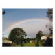 An early morning rainbow announcing the storms departure is draped over the suburban landscape.