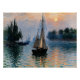 "Morning Sail" portrays a serene morning scene on the water, capturing the gentle current sailing down a river under the soft hues of dawn. The artist employs his signature Impressionist style, using delicate brushstrokes and a palette of muted tones to evoke the tranquil atmosphere of early morning on the water. The play of light and shadow creates a sense of movement and depth, inviting viewers to immerse themselves in the peaceful beauty of the moment.