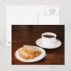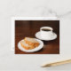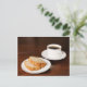 A photographic image of a nice cup of coffee with some banana bread to eat? Comes with the words and invitation for "Morning tea...anyone?"