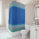 Moroccan blue and green tiles border and stripes shower curtain