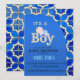 Celebrate the arrival of your baby boy with this elegant Moroccan-inspired baby shower invitation. Featuring rich blue tones and traditional zellige tile patterns, it’s perfect for a stylish and cultural “It’s a Boy” celebration.