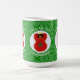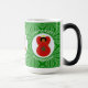 Magic morphing mug features a Moroccan Angel, dressed in the flag of Moroccan, inside a white, fractal circle of squiggly squares. The circle is on a green fractal background of squiggly squares. Add a name, holiday, and year to personalise your mug as a gift or to add to your holiday decorating. Lovely for Christmas decor. Design shows on three sides of mug. Use the "edit design" option to change the font and/or colour of the name, holiday and year.