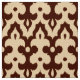 Moroccan inspired damask pattern of interlocking positive / negative fleur-de-lis shapes with a striated, Ikat woven texture - deep chocolate brown and camel tan fabric