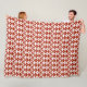 Moroccan Ikat Damask Pattern, Deep Red and White Fleece Blanket