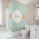 Moroccan Lattice Monogram Elegant Gold Teal Blue Shower Curtain