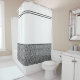 A unique design featuring a crisp white shower curtain with a themed moroccan diamond shaped border in black and white. Customised by you if needed.
