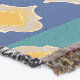 A quality printed throw has its advantages. This is a much finer weave throw than its loopier cousins, and though lighter, it is worth the investment for custom room accessorizing. The back is much prettier than the typical brown, and the fringe on the long sides very vivid, the selvage nicely done. Before photographing, I washed the throw in cold water, delicate, with a thicker woven throw the same size. On tumble dry low, this throw was dry in half the time as the other. This is a very practical quality if you use throws for furniture covers or to wrap up in frequently. The sleekness of the fabric makes it a great layer for accenting or protecting without the feeling of sitting on too much stuff. Perfect for napping or when you feel a light chill coming on. The color printing is beautiful and on this fabric, matched the design and color of my Photoshop image. This is an advantage for blending room fabrics and colors. The fringe on the short sides prints the colors from the design image and therefore varies from the side fringe. I streaked a white fractal line through the plaid pattern to give the illusion of weaving. This printed as crisp as an illusory thread, and put some white in the short side fringe, showing another advantage of print vs loomed- for artistic purposes, line lines, detail, and color integrity can be planned and preserved. My loomed throws have color limitations and more of a needlepoint texture. Print throws reproduce an exact image. The throw felt a little stiff straight out of the package, but this went away in the first delicate wash. Of course I searched the wash water for ink or bleeding and there was none.