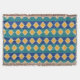 Elegant vibrant mix of yellow Moroccan shapes on blue and green stripes