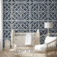 Moroccan Quatrefoil Blue and White Marble Wallpaper