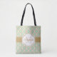Moroccan Quatrefoil Pattern Gold Mint Monogram Tote Bag