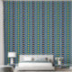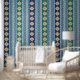 Elegant mix of yellow Moroccan shapes on blue or green plus blue stripes