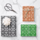Moroccan Tile, Black/White, Orange, Jade Green Wrapping Paper Sheet