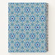 A symmetrical Moroccan pattern consisting of a mosaic of blue shades.
